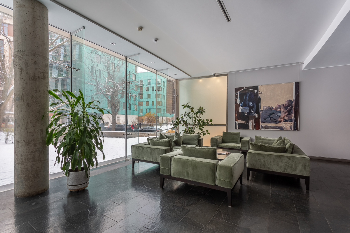 Первый этаж ЖК Молочный Дом в Молочном пер., д.1 занимает просторное лобби с панорамным остеклением и выходом во внутренний двор. Для встречи гостей организованы удобные зоны ожидания. В комплексе для жильцов работают бассейн с сауной и тренажерный зал — занимайтесь спортом в любое удобное для вас время! На закрытой территории расположены тенистые аллеи, где можно спрятаться от городской суеты. Подземный гараж рассчитан на 53 машины — у каждой квартиры не возникает проблем с парковкой.